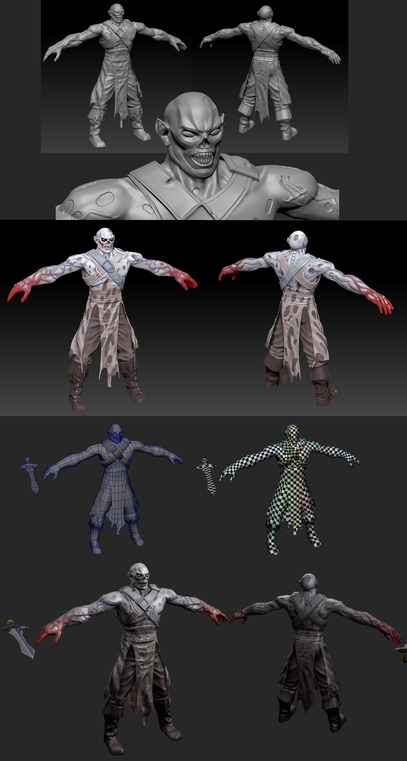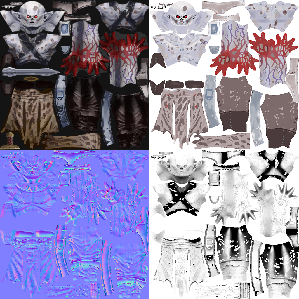 Here are the textures: Final albedo, Zbrush painted diffuse, normal, and AO (there was no specular map).